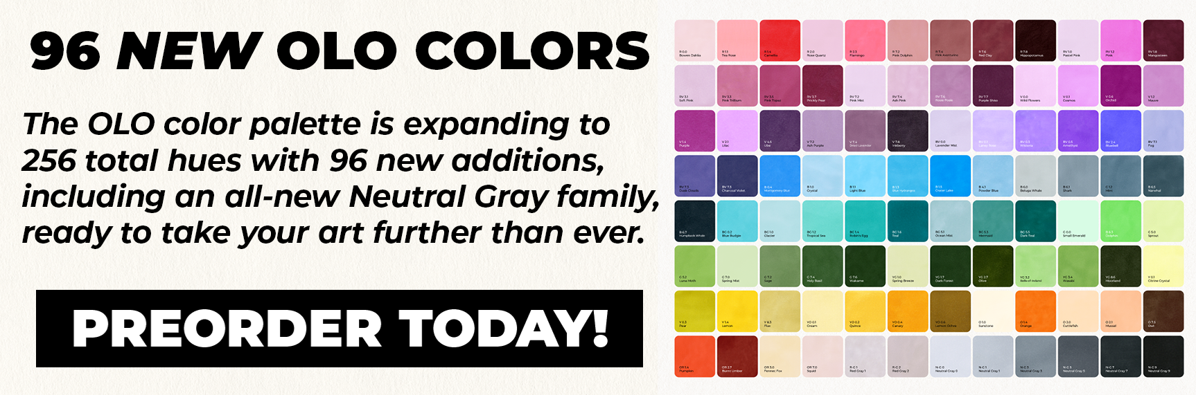 The OLO color palette features 160 colors that span the color wheel with rich hues and varied depth.