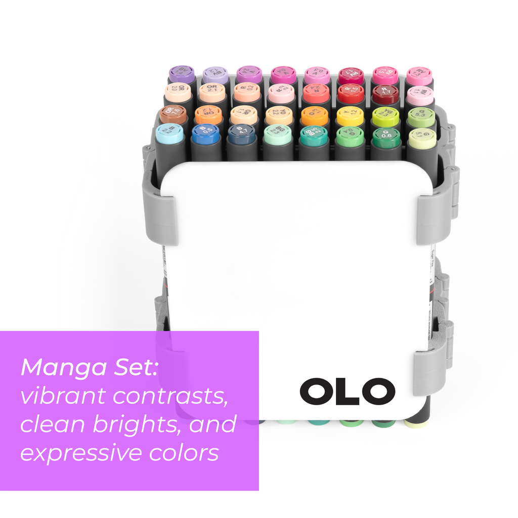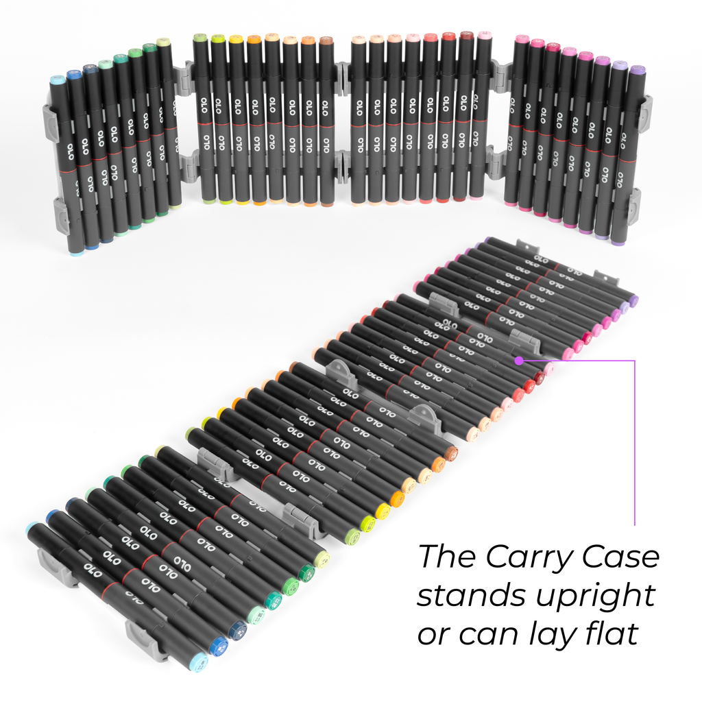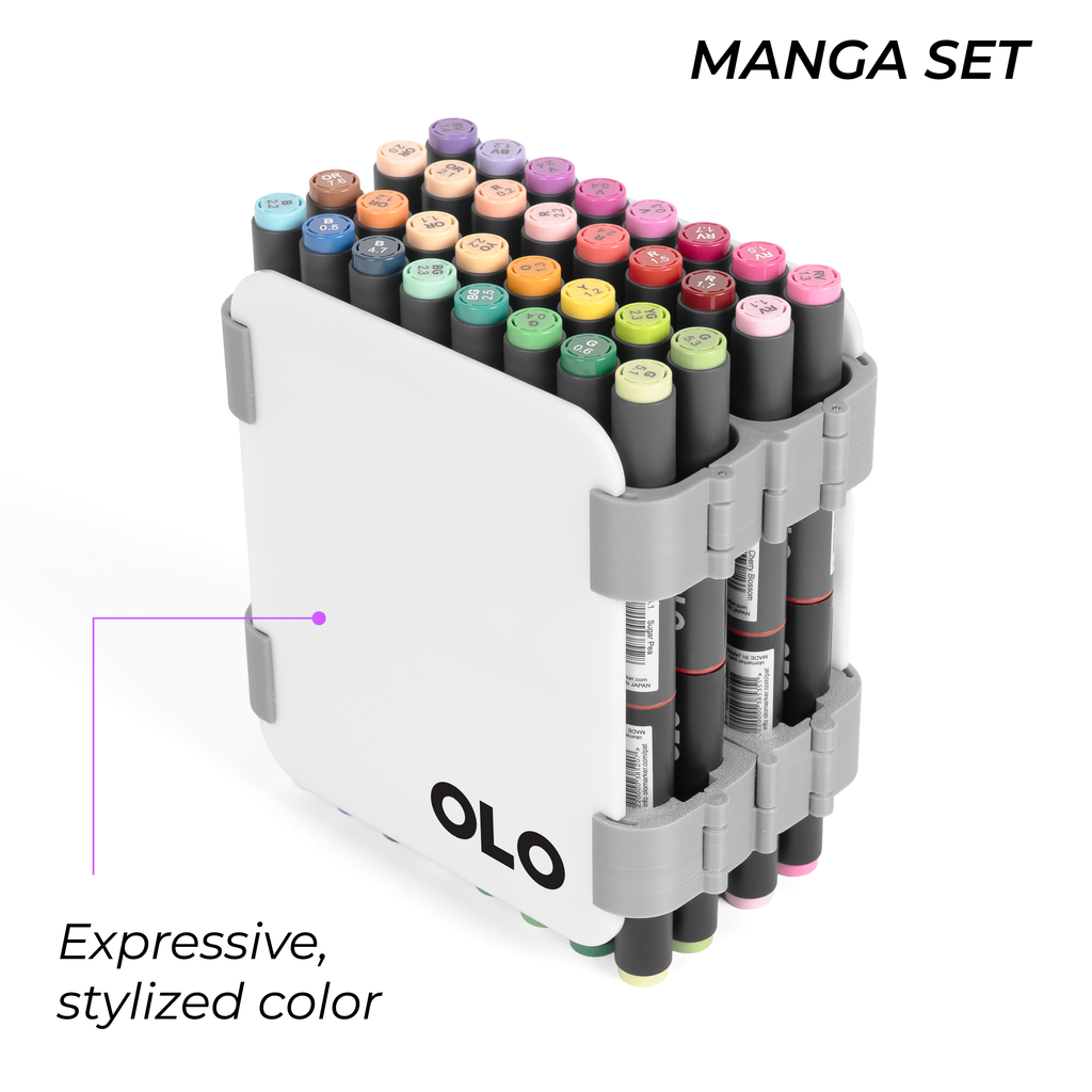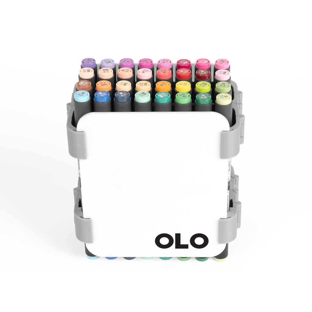 Introducing new themed sets of OLO brush/chisel markers, curated to fit the way you create. Each set is paired with an OLO carry case as shown. Choose between Small or Large sets. Small sets include 16 curated brush/chisel markers for focused palettes, while Large sets include 32 brush/chisel markers for expanded variation and smoother transitions between hues.