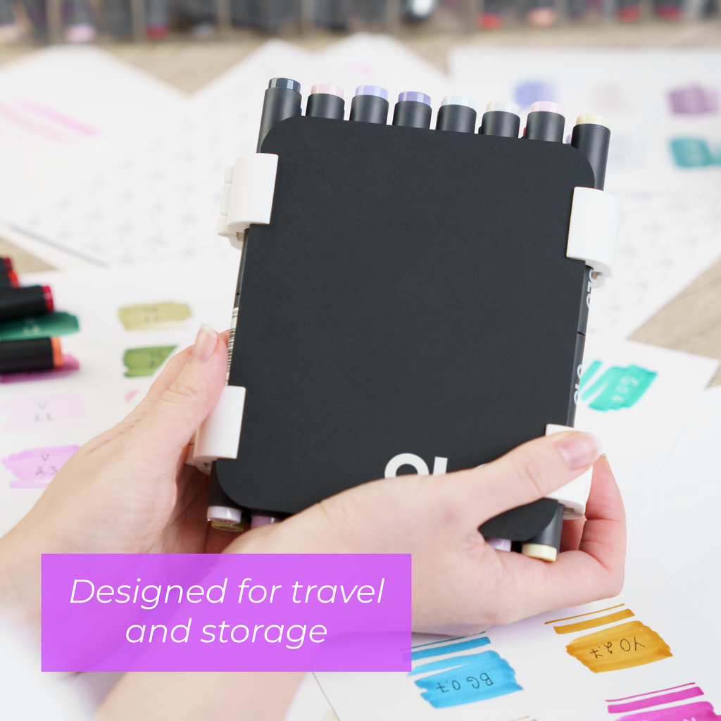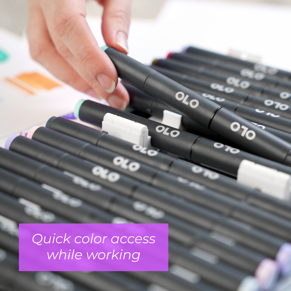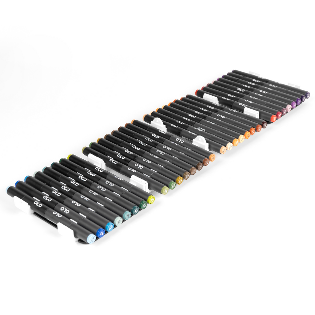 Introducing new themed sets of OLO brush/chisel markers, curated to fit the way you create. Each set is paired with an OLO carry case as shown. Choose between Small or Large sets. Small sets include 16 curated brush/chisel markers for focused palettes, while Large sets include 32 brush/chisel markers for expanded variation and smoother transitions between hues.