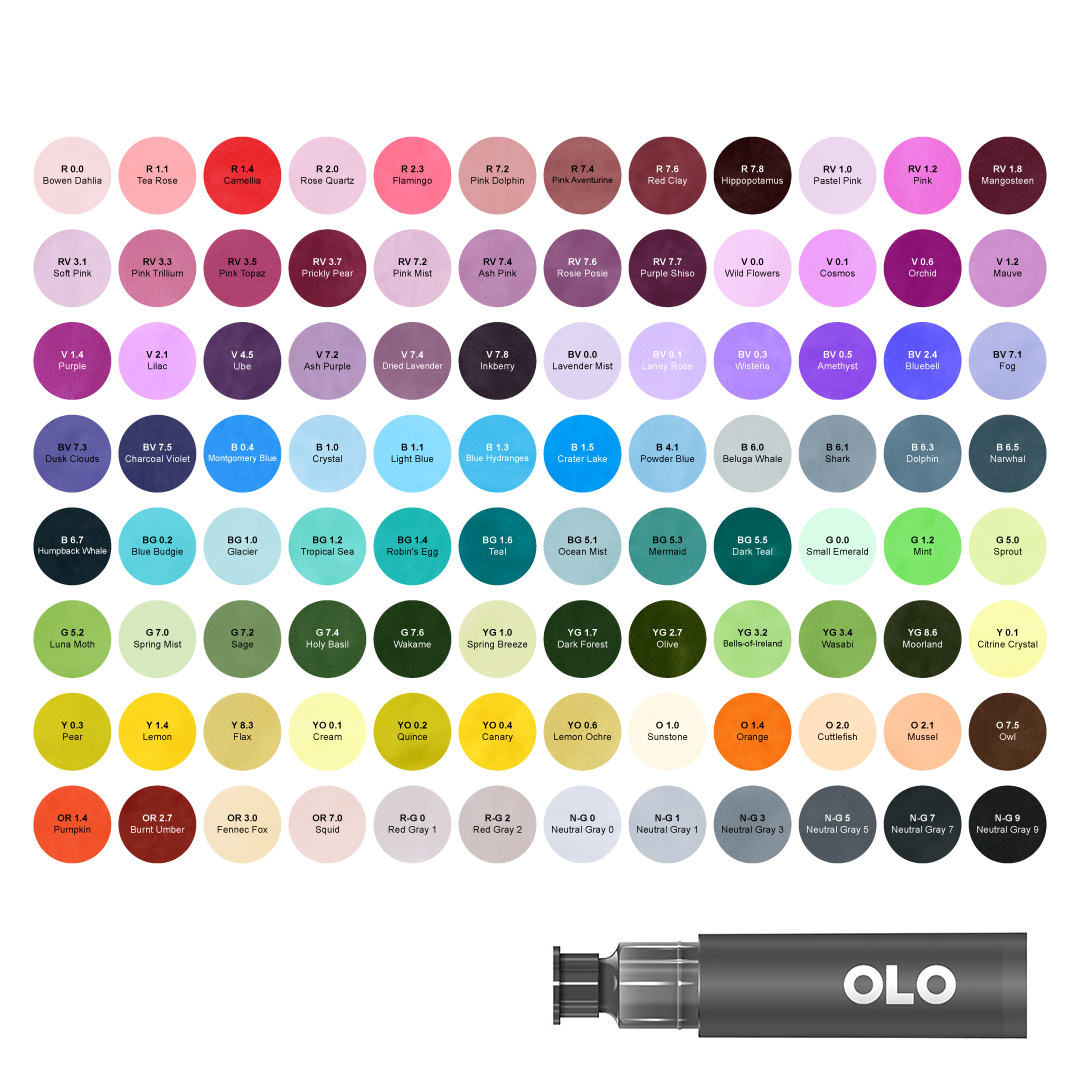 Introducing 96 New OLO Colors. The OLO color palette has expanded to 256 total colors, bringing greater depth, balance, and versatility across every color family. This 96-color expansion enhances blending transitions, broadens tonal ranges, and fills key gaps throughout the system. It also introduces an entirely new color family to OLO: Neutral Gray.