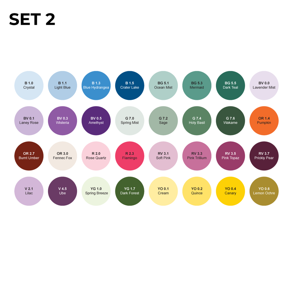Every new color has been thoughtfully developed to improve blending transitions, expand tonal ranges, and fill tonal gaps. You will find more greens, richer red-violets, expanded yellows and blues, and new neutrals for seamless shading and dimension.