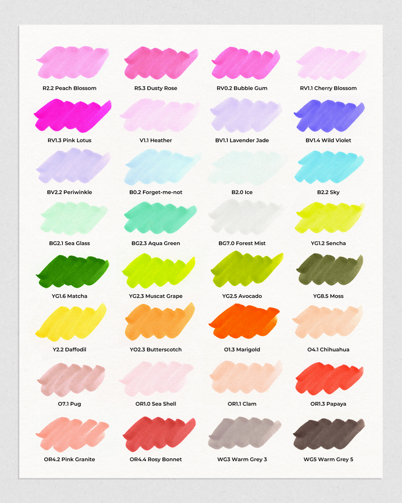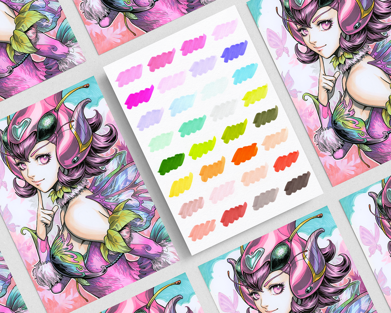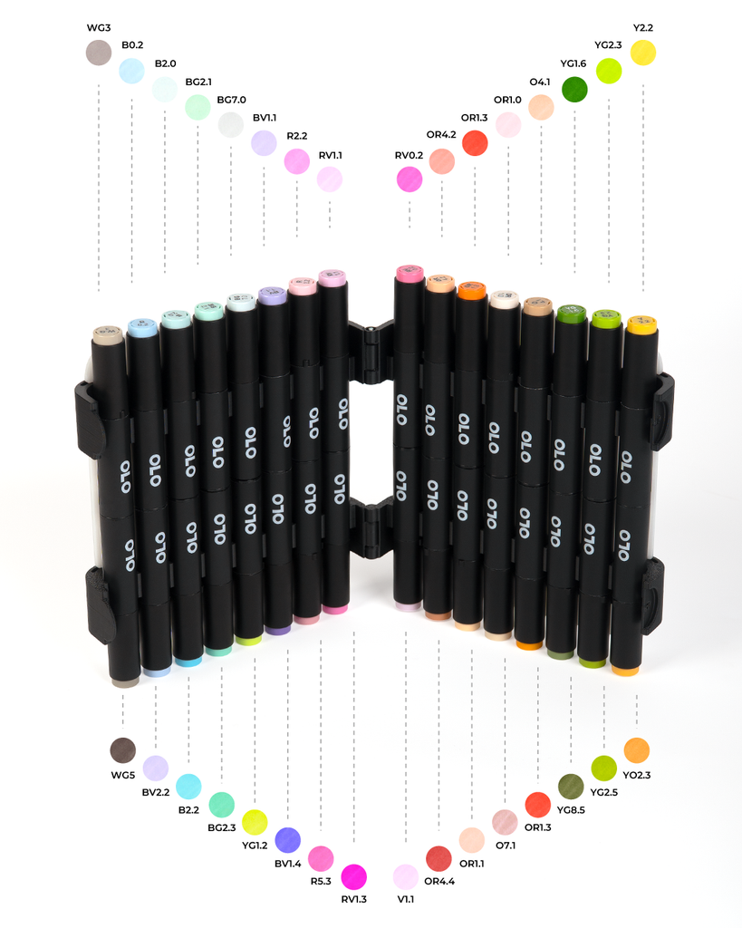 32 OLO™ Marker colors personally selected by Stanley “Artgerm” Lau. Featuring his artwork Pepper Fairy and inspired by his original character Pepper, this palette is bright, versatile, and easy to harmonize.