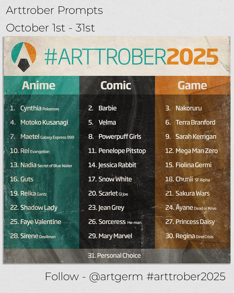 Each October, Stanley “Artgerm” Lau hosts Arttrober, a month-long art challenge where artists worldwide create daily pieces from his prompt lists. Since 2017, thousands of participants have joined in, drawing inspiration from characters across comics, anime, and games.
